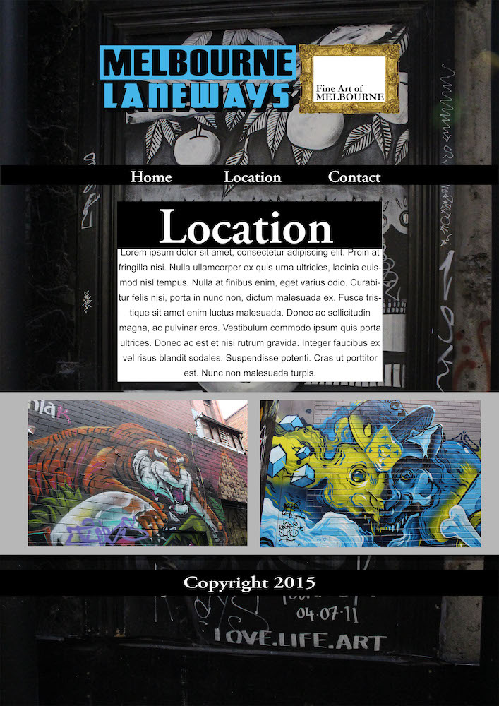RMIT assignment - Design a 2 pages for a website about the laneways in Melbourne that are famous for street art.